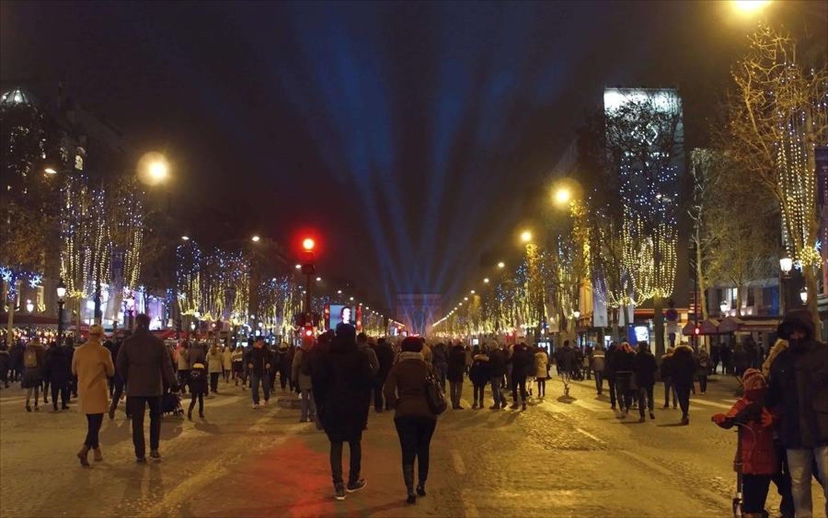 Συγκέντρωση στη διάσημη λεωφόρο Ηλύσιων Πεδίων του Παρισιού για τον εορτασμό του νέου έτους.