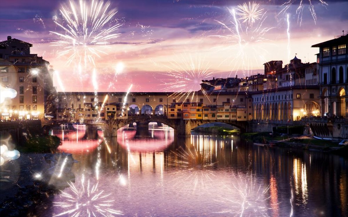 Η πρωτοχρονιάτικη Φλωρεντία με τη λάμψη των πυροτεχνημάτων.