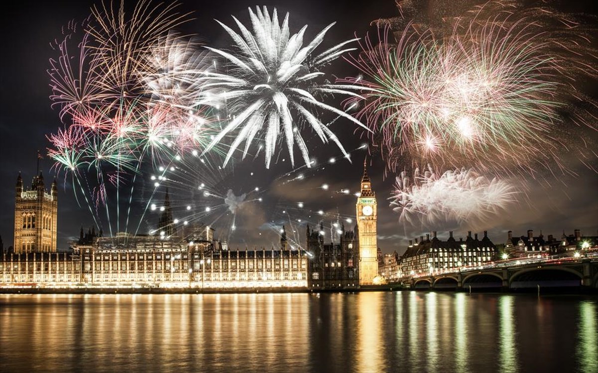 Ο φωτισμένος από πυροτεχνήματα ουρανός του Λονδίνου στο Big Ben.