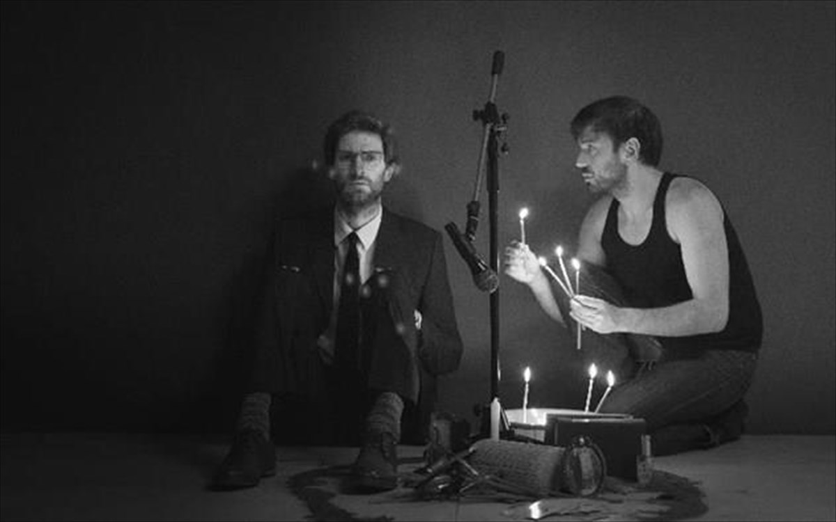 Ο Μάνος Καρατζογιάννης και ο Μάξιμος Μουμούρης στο έργο του Ενζό Κορμάν, που πρωτοπαρουσίασαν τον Οκτώβριο στο πλαίσιο του Φεστιβάλ Σύγχρονου Θεάτρου «Γαλλικό Θέατρο à la grecque», στη σκηνή του Ιδρύματος Μιχάλης Κακογιάννης. (έως 24 Απριλίου, Bios)