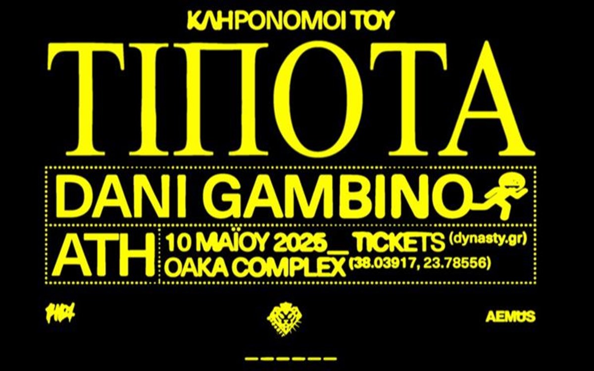 Τον αύλειο χώρο του συμπλέγματος του Ο.Α.Κ.Α. (Parking 5) διάλεξε ένας ακόμα εκπρόσωπος της νέας τάσης του ελληνικού Hip-Hop που γνωρίζει τεράστια επιτυχία. o Dani Gambino, για να παρουσιάσει το νέο του, τρίτο album με τίτλο «Κληρονόμοι του τίποτα», στις 10 Μαΐου.