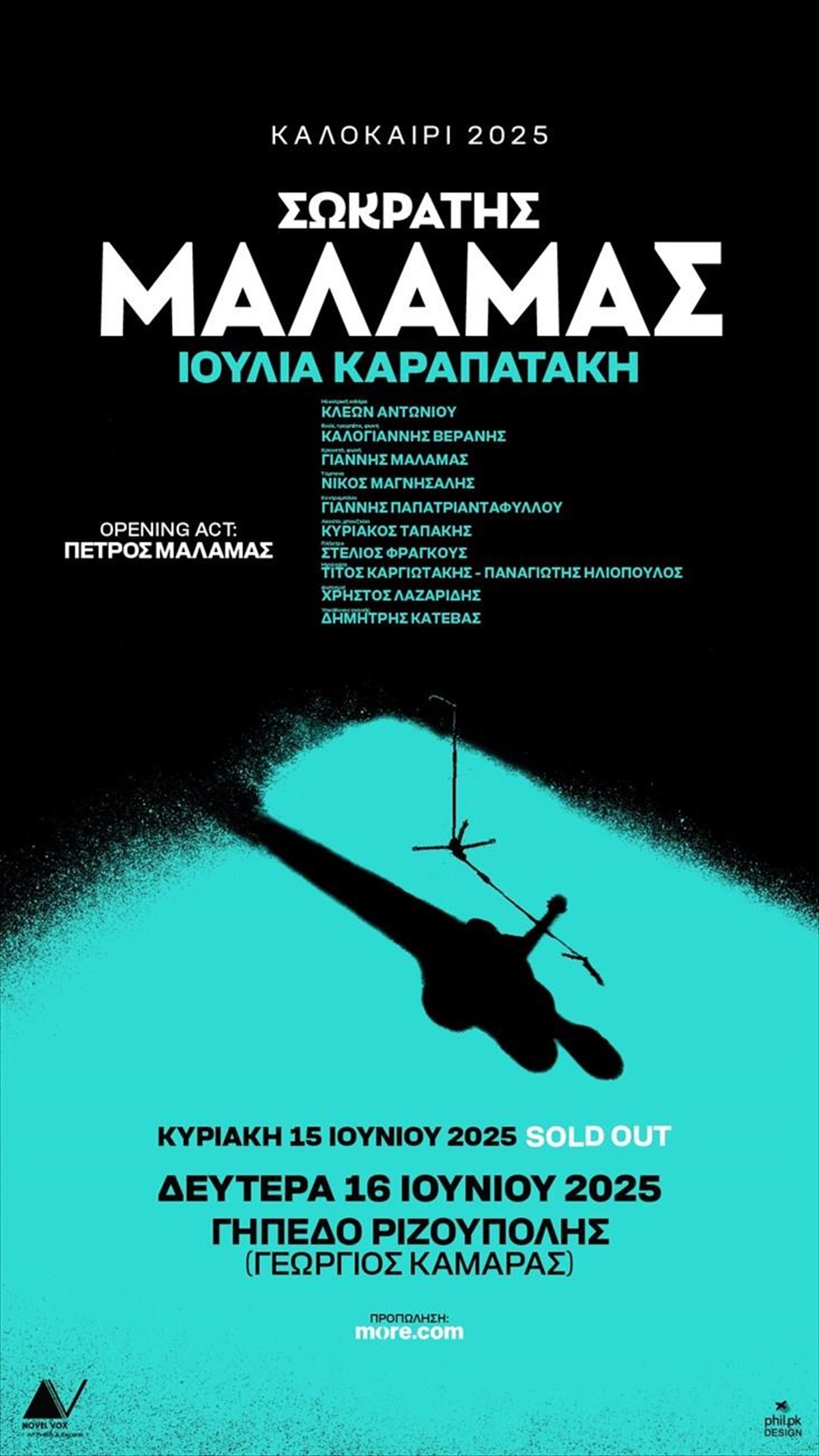 Ο Σωκράτης Μάλαμας μαζί με την Ιουλία Καραπατάκη και τη μπάντα του μετά το sold out της Κυριακή 15 Ιουνίου στο Γήπεδο της Ριζούπολης, προσθέτουν νέα ημερομηνία στον ίδιο χώρο.