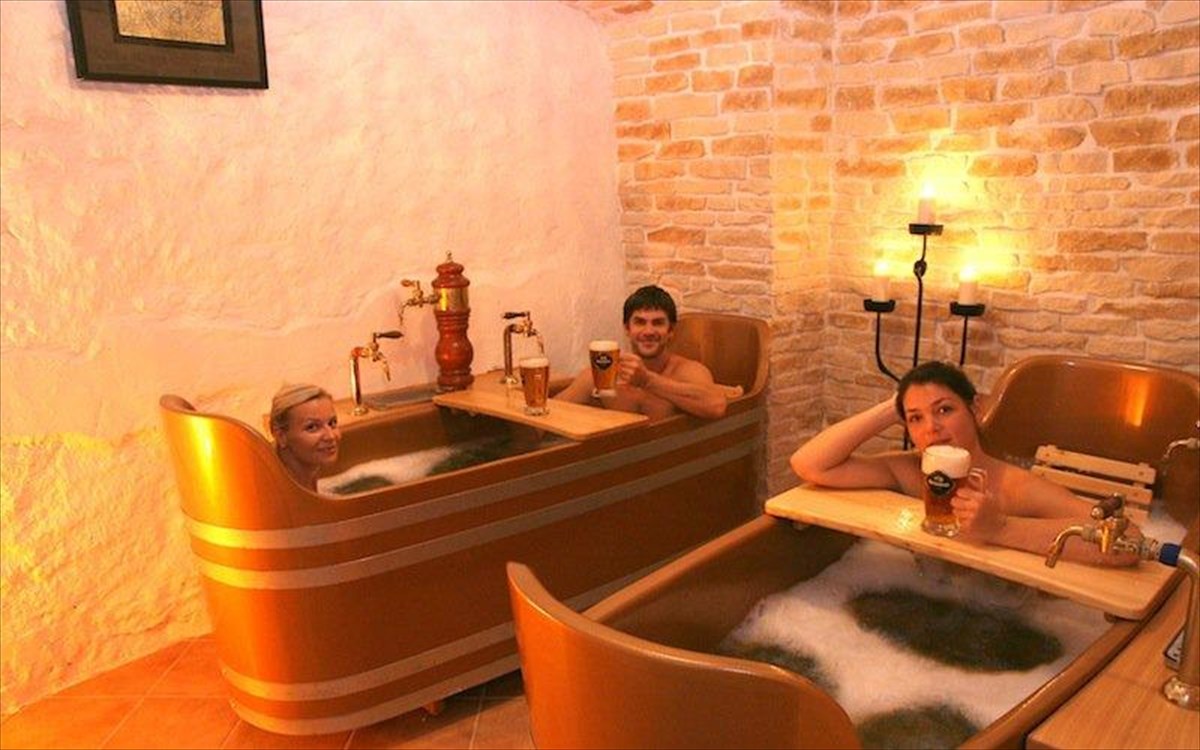 Σίγουρα, ένα μεγάλο ποτήρι παγωμένη pilsner δεν θα ήταν κι άσχημο, ειδικά μέσα στον καύσωνα. Αλλά τι θα λέγατε για ένα… μπάνιο μέσα σε άφθονη μπύρα; Στο Pivni Lazne Bernard θα έχετε τη δυνατότητα να το κάνετε. Στην Τσεχία τον Μεσαίωνα, το μπάνιο μέσα σε μπύρα θεωρούνταν ευεργετικό για το δέρμα. Αφού λοιπόν, μουλιάσετε και στεγνώσετε, απολαύστε κι ένα ποτήρι pilsner.