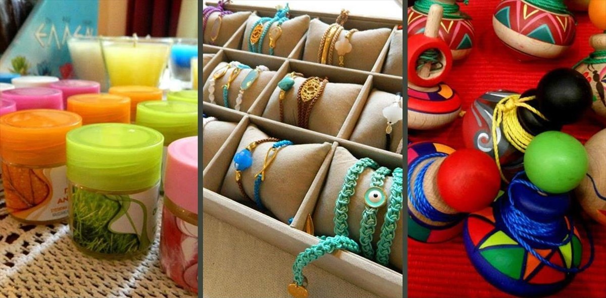 Εκεί θα μπορείτε να δείτε και να αγοράσετε κοσμήματα, ξύλινα παιχνίδια, χειροποίητα ρούχα, πέδιλα και τσάντες, θεραπευτικά σαπούνια, κεραλοιφές, αρώματα, εξαιρετικής ποιότητας ελαιόλαδο και ελιές, βότανα από την Ελληνική γη, παραδοσιακά αλκολοούχα ποτά και πολλά ακόμα αντικείμενα φτιαγμένα με αγάπη και μεράκι.