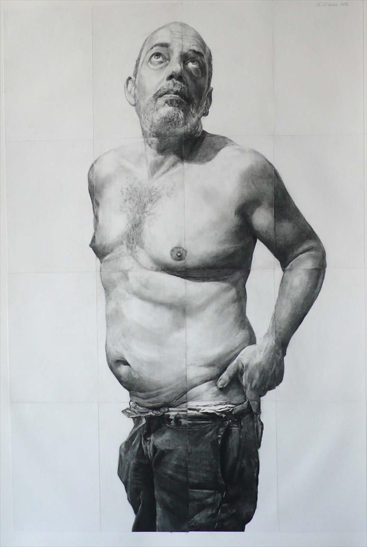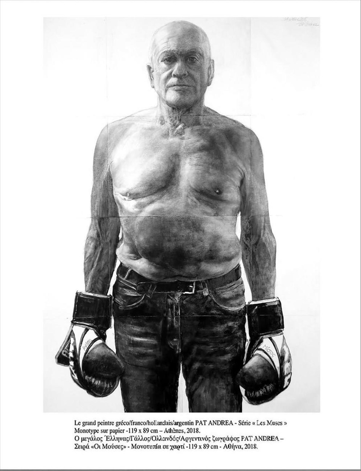 Μετά σε αλεπάλληλες διαστρωματώσεις από κάρβουνο και μαλακά μολύβια ως τις πιο λεπτές ασημένιες αποχρώσεις του γραφίτη ο ζωγράφος ενεργοποιεί όλη την υποδόρια αύρα σ’ αυτές τις μορφές. Τους απελευθερώνει δηλαδή έναν ιχνογραφημένο βιορυθμό που προκαλεί δέος στην παρατήρησή τους διατρέχοντας αυτή την ζωφόρο με τον παράδοξο και σκαμπρόζικο τίτλο «ΟΙ ΜΟΥΣΕΣ». Είναι μια ανατρεπτική θέση αμφισβήτησης και υπονόμευσης του καθιερωμένου αποδεκτού προτύπου του γυμνού ποθούμενου σώματος της γυναίκας «μούσας» του έρωτα και της τέχνης.