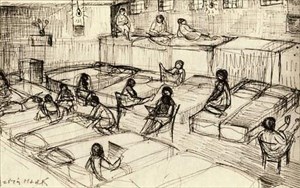 Ένα από τα ελάχιστα σκίτσα της Ζ. Μακρή από το θάλαμο πολιτικών κρατουμένων.