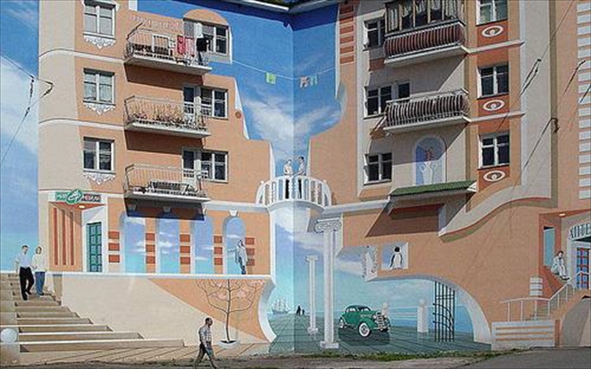 Ο John Pugh είναι ένας καλλιτέχνης που δίνει μια διαφορετική όψη στα κτίρια μέσα από την ψευδαίσθηση των τριών διαστάσεων. Ξεκίνησε να κάνει τις πρώτες τοιχογραφίες το 1970 και το ιδιαίτερο στυλ του είναι πλέον αναγνωρίσιμο και γνωστό ως «Narrative illusionism».
