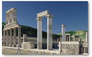 αφορά στην παρουσίαση αυθεντικού αρχιτεκτονικού υλικού από τον δεύτερο όροφο του ανακτόρου του Φιλίππου Β' το οποίο δεν μπορεί να επανατοποθετηθεί στο μνημείο κατά την επικείμενη αναστήλωση του καθώς δεν σώζονται οι υποκείμενοι λίθοι που χρειάζονται για να στηριχθεί. Ετσι, στον αναπεπταμένο αρχαιολογικό χώρο των Αιγών θα βλέπουμε σε λίγο την τρίτη διάσταση του διώροφου τεράστιου παλατιού του Μακεδόνα βασιλιά που αποτελεί πρότυπο οικοδόμημα δημόσιου χαρακτήρα και μέσα στο μουσείο η εικόνα του θα συμπληρώνεται με μια μερική αναπαράσταση της πρόσοψης του δευτέρου ορόφου από το πρόπυλο της εισόδου.