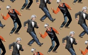 Στην έκθεση, παράλληλα με τη γλυπτική και τα φιλμς παρουσιάζονται και τα μεγάλα έργα της δεκαετίας του 90, αλληγορίες για τα γκροτέσκα οράματα της ανθρωπότητας. Αυτοί οι θεαματικοί πίνακες περιλαμβάνουν τα έργα του  Le Carnaval à Périgueux, 1992, Le jour des roses sur le Toit, 2005, Poissons d' avril 2007, και Ici Plage , comme ici bas, 2012.