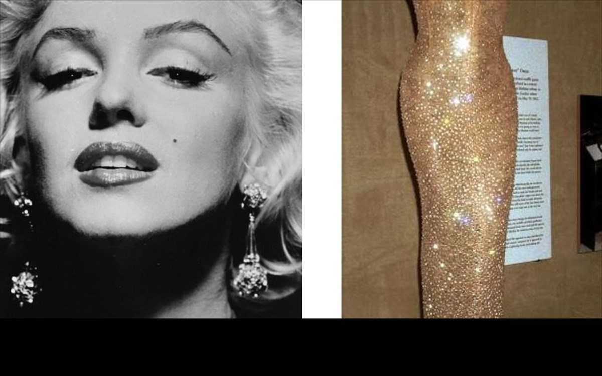 Και φυσικά το ένδυμα ανήκει στην Marilyn Monroe η οποία φόρεσε αυτό το λαμπερό φόρεμα στα γενέθλια του Προέδρου της Αμερικής, John F. Kennedy το 1962. Το φόρεμα έχει το χρώμα του δέρματος και είναι τόσο στενό που λέγεται ότι η Marilyn δε φορούσε τίποτα από μέσα.