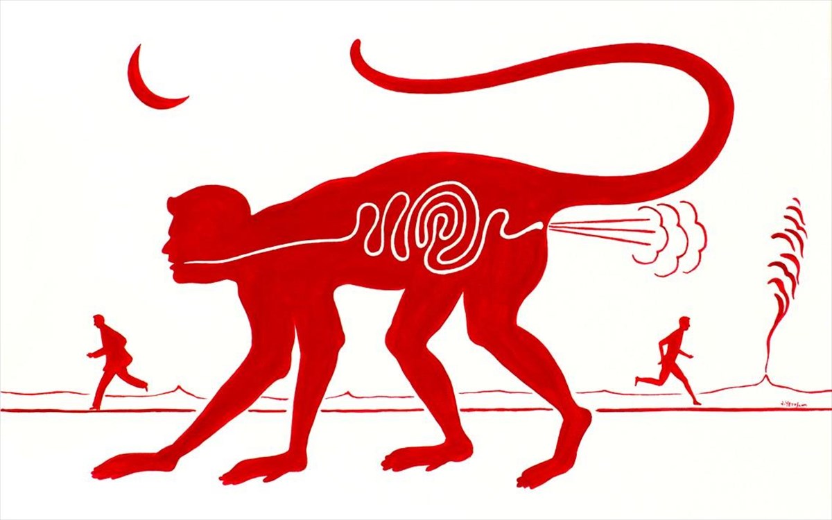 Όλα τα έργα δημιουργήθηκαν μέσα στο 2016 και, εκτός από μερικά σύμβολα της ζωγραφικής του που συναντάμε και σε αυτή τη δουλειά, όπως το ανθρωπάκι που τρέχει, τα σύννεφα, τον ορίζοντα κ.α., δεν έχουν μεγάλη σχέση με τους λαμπερούς, πολύχρωμους πίνακες, για τους οποίους μας είναι περισσότερο γνωστός. Εξάλλου, η ίδια η θεματολογία του έχει αλλάξει πολύ, παρ’ όλο που εξακολουθεί να διατηρεί αμείωτο τον προβληματισμό του για το περιβάλλον και τα σχετικά με αυτό ανθρώπινα δημιουργήματα.