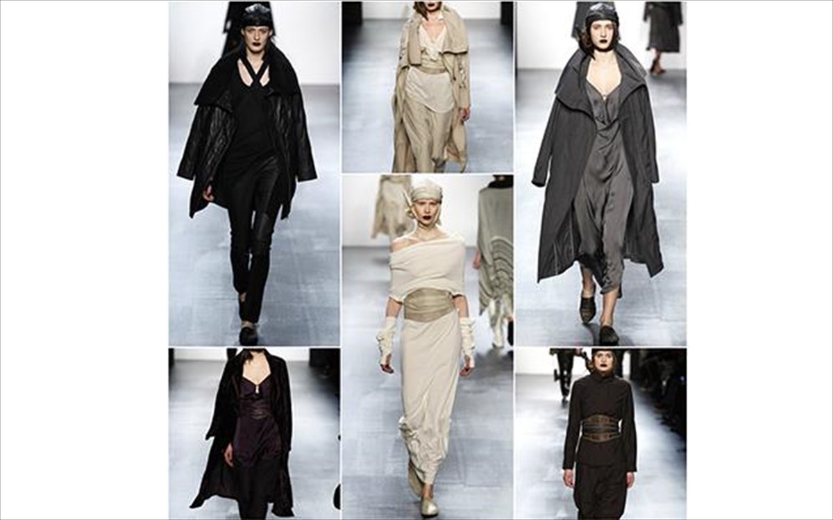 Μια εξαιρετική συλλογή με αέρα αστικού νομαδισμού. Αποχρώσεις της άμμου, μαύρο, γκρι κι σκούρο μοβ κυριαρχούν δημιουργώντας κατά κύριο λόγω μονοχρωματικά looks. Οι σχεδιαστές συνδυάζουν όλα τα κομμάτια με δερμάτινες μπαντάνες και μαροκινά mules ενώ βλέπεις και military φαρδιές ζώνες με φερμουάρ να διαμορφώνουν τις σιλουέτες. Άνετα ρούχα που συνδυάζουν πολλά layers αλλά και κομμάτια που δένουν γύρω από το σώμα.