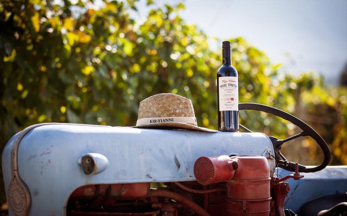 Το νέο κρασί της Κυρ-Γιάννη τιμά τη σχέση των συνεργατών στην αμπελουργία και θυμάται το μπλε τρακτέρ του Γιάννη Μπουτάρη, όταν φύτεψε το Κτήμα Κυρ-Γιάννη στη Νάουσα.