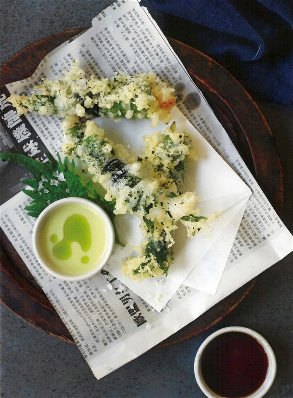 Οι γαρίδες tempura τυλιγμένες σε φύλλα hoba
