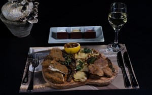 Παράλληλα, η κάβα του είναι εφοδιασμένη με 50 ετικέτες ελληνικών και διεθνών κρασιών και σίγουρα δεν θα απογοητεύσει και τους λάτρεις του οίνου.