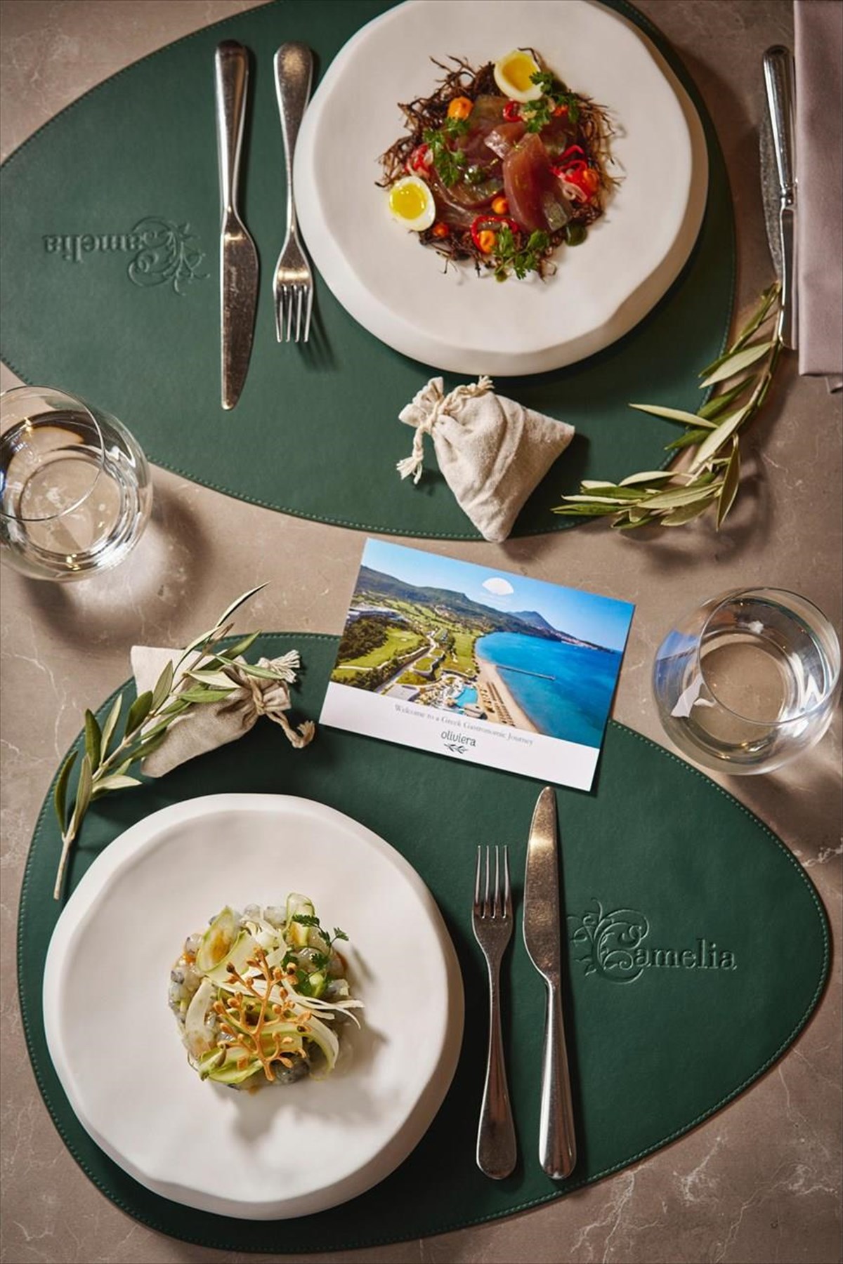 Μεταξύ των ξεχωριστών προτάσεων, περιλαμβάνονται το concept της «παραμάνας», που παρουσιάζει παραδοσιακά ελληνικά ορεκτικά, καθώς και μια σειρά από πιάτα εμπνευσμένα από τη μεσογειακή κουζίνα, όπως Ελληνική σαλάτα με βιολογικές ντομάτες, ελιές Καλαμάτας, αγγούρι, φέτα, Τραγανό καλαμάρι με μελιτζάνα, γραβιέρα Μεσσηνίας, σάλτσα ντομάτας και δυόσμου, Σαγανάκι με γραβιέρα, μαρμελάδα μούρων, ούζο, Μουσακά Oliviera με σιγομαγειρεμένα μάγουλα μόσχου, μελιτζάνα, μπεσαμέλ, Κριθαρότο Αστακού με παραδοσιακό κριθαράκι, Φαγκρί αλά Πολίτα με αγκινάρες, καρότα, αρακάς και για επιδόρπια Crémeux από κατσικίσιο τυρί με lime, crumble λευκής σοκολάτας, παγωτό γιαούρτι – μέλι και Μέλι βανίλια από τα μελίσσια της περιοχής με γύρη και παγωτό χαμομήλι. Οι επισκέπτες στο Μαϊάμι θα έχουν επίσης την ευκαιρία να απολαύσουν τέσσερα μοναδικά cocktails, εμπνευσμένα από τα αρώματα της ελληνικής γης.