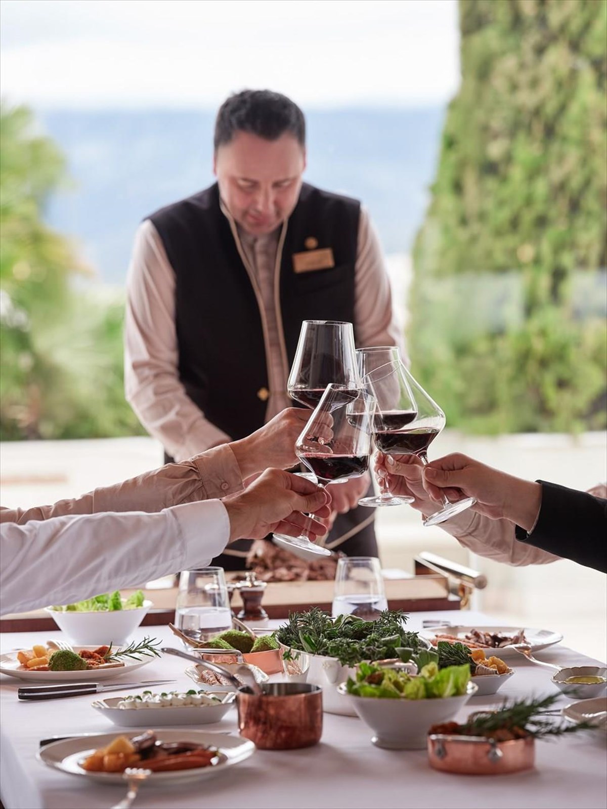 Πρωταγωνιστής είναι το παραδοσιακό ψητό αρνί στη γάστρα με μυρωδικά, συνοδευόμενο από γιαούρτι με τσαλαφούτι και μαντζουράνα και μια σειρά από εκλεκτά πιάτα που αναδεικνύουν την πλούσια ελληνική γαστρονομική παράδοση. Το μενού που έχουν επιμεληθεί ο Executive Chef Αστέριος Κουστούδης και ο Chef de Cuisine Νίκος Λιόκας περιλαμβάνει γεύσεις που απογειώνουν την εμπειρία: τραγανά τηγανητά αρνίσια γλυκάδια με πικάντικα μπαχαρικά, χειροποίητη πίτα στα κάρβουνα, ζουμερές σεφταλιές από σπάλα με σάλτσα δυόσμου, αλλά και τραγανές πατάτες φούρνου με αλάτι δενδρολίβανου, κάθε πιάτο είναι ένας ύμνος στις παραδοσιακές γεύσεις της ελληνικής κουζίνας. Σε συνδυασμό με τη μαγευτική θέα της πόλης και την κορυφαία εξυπηρέτηση, το κυριακάτικο γεύμα μετατρέπεται σε μια πραγματική γιορτή που θυμίζει τα οικογενειακά τραπέζια της παιδικής ηλικίας.