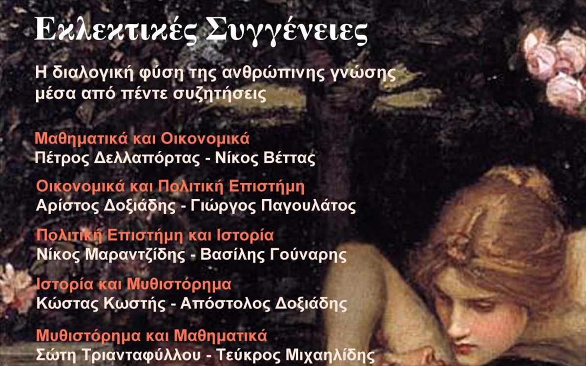 Η συζήτηση θα ξεκινήσει από το διάλογο των μαθηματικών με τα οικονομικά, θα περάσει από την πολιτική επιστήμη και την ιστορία για να επιστρέψει στο διάλογο ανάμεσα στο μυθιστόρημα και τα μαθηματικά.