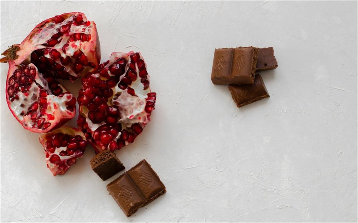 Αν αναζητάτε κάτι πιο παιχνιδιάρικο, δοκιμάστε ρόδι με κομματάκια μαύρης σοκολάτας και λίγα φύλλα μέντας. Ο πλούτος αντιοξειδωτικών του ροδιού προστατεύει τα κύτταρα από τη φθορά, ενώ η μαύρη σοκολάτα προσφέρει φλαβονοειδή που βελτιώνουν την κυκλοφορία και την εγκεφαλική λειτουργία. Η μέντα δίνει μια δροσερή νότα που ανανεώνει τον ουρανίσκο και κάνει τον συνδυασμό ιδιαίτερα ευχάριστο.