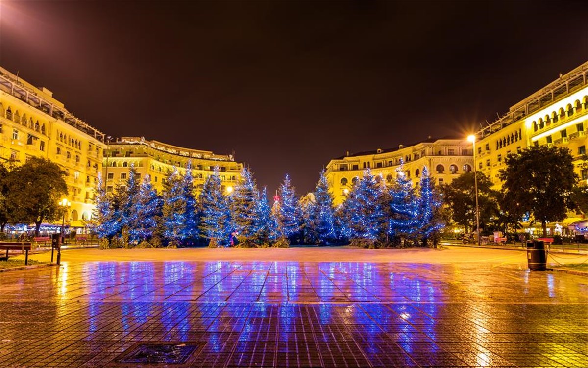 Χριστουγεννιάτικα δέντρα στην Αριστοτέλους της Θεσσαλονίκης, την πόλη που κάθε χρόνο μετρά εκατοντάδες χριτουγεννιάτικες εκδηλώσεις.