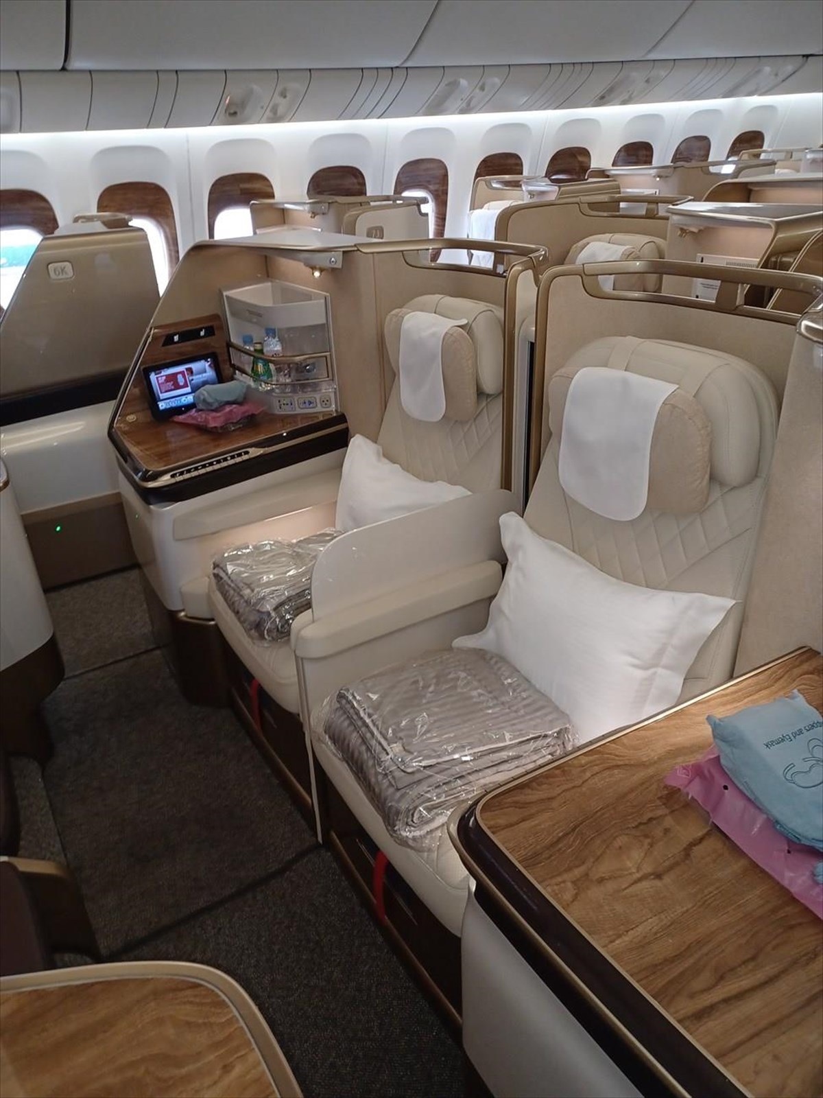 • Η Business Class: Εμπνευσμένη από το Airbus A380 της Emirates, η καμπίνα της Business Class διαθέτει 38 πολυτελή καθίσματα σε διάταξη 1-2-1, προσφέροντας άμεση πρόσβαση στον διάδρομο για κάθε επιβάτη. Κάθε κάθισμα μετατρέπεται σε πλήρως επίπεδο κρεβάτι μήκους 78,6 ιντσών, ενώ η οθόνη HD 23 ιντσών προσφέρει κορυφαία εμπειρία ψυχαγωγίας κατά τη διάρκεια της πτήσης.
