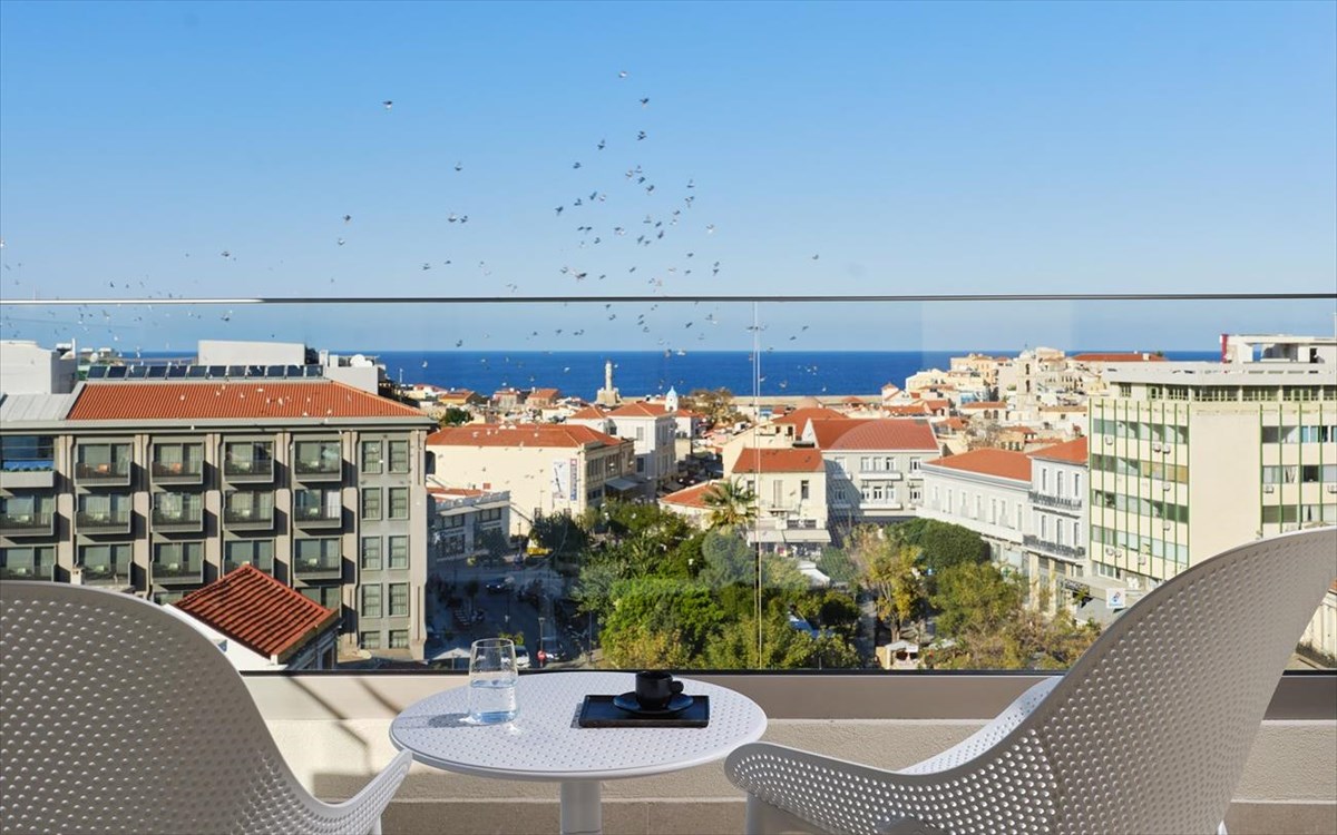 Στον 8ο όροφο, το Rooftop bar–restaurant Rodopou & Beyond ανεβάζει την εμπειρία κυριολεκτικά και μεταφορικά. Η πανοραμική θέα αγκαλιάζει τα Λευκά Όρη, τη θάλασσα και το ενετικό λιμάνι, με τον εμβληματικό φάρο να ξεχωρίζει στον ορίζοντα. Είναι το ιδανικό σημείο για ηλιοβασίλεμα, signature cocktails και σύγχρονες γεύσεις καθ’ όλη τη διάρκεια της ημέρας, ενώ παραμένει ανοιχτό όλο τον χρόνο και απευθύνεται τόσο στους επισκέπτες του ξενοδοχείου όσο και στο κοινό της πόλης, φιλοδοξώντας να εξελιχθεί σε νέο city hotspot.