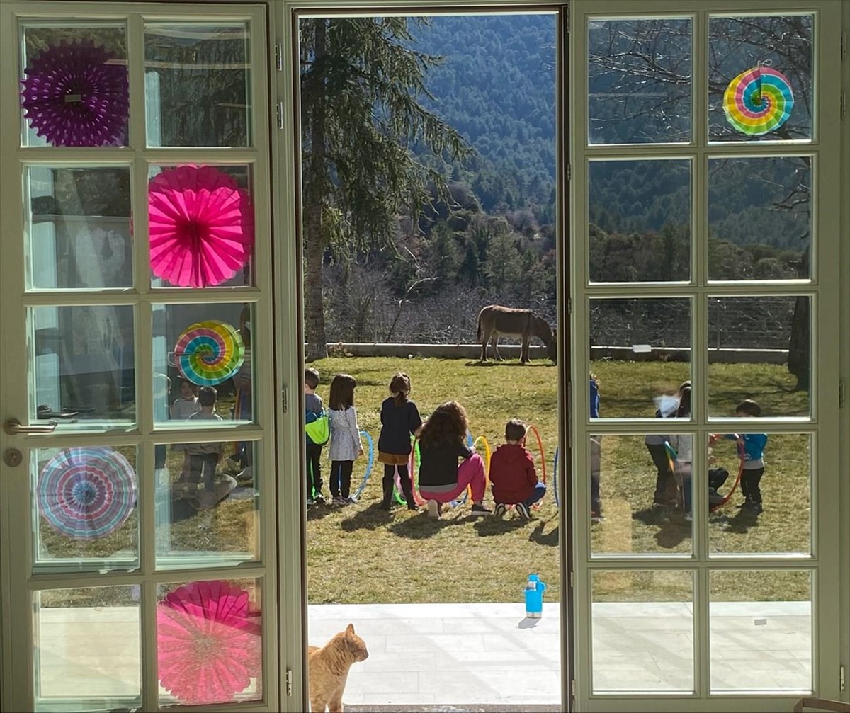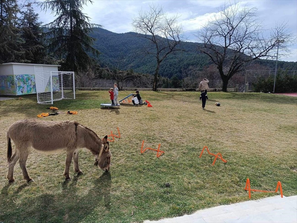 Παράλληλα, το σχολείο του χωριού λειτουργεί ως ανοιχτός χώρος ελεύθερου παιχνιδιού, δημιουργίας και χαλάρωσης. Χωρίς αυστηρό πρόγραμμα αλλά με ροή και επιλογές για όλους, φιλοξενεί κατασκευές, αθλητικές δραστηριότητες και γωνιές ξεκούρασης. Το ποδαρικό στον Μάρτιο γίνεται με το σχολείο να μεταμορφώνεται σε χώρο αταξίας και χαράς, με έμφαση στο messy, sensory και natural play.