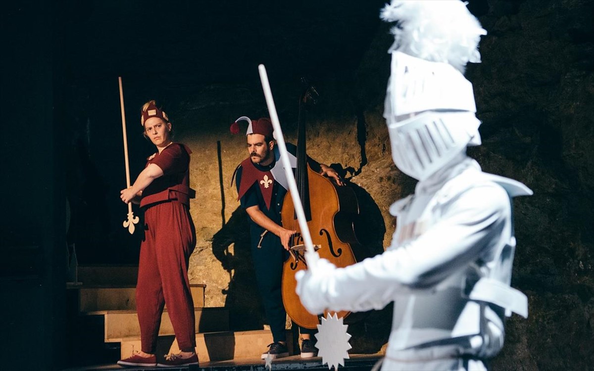 «Ο ανύπαρκτος ιππότης»: Η ομάδα Ντουθ ζωντανεύει την ιστορία του ανύπαρκτου ιππότη, βασισμένη στο ομώνυμο μυθιστόρημα του Ίταλο Καλβίνο. Μία ιστορία με μαγικά πλάσματα, ιππότες, βασιλιάδες, ξύλινα άλογα, σπαθιά, σημαίες και παιδικά παιχνίδια που μιλάει για την ταυτότητα, τον ιπποτισμό και τη δύναμη της θέλησης. Ένας βασιλιάς, ένας ανύπαρκτος ιππότης, ένας αστείος ιπποκόμος, ένα κορίτσι με γαλάζια πανοπλία, ένας θαρραλέος νέος στρατιώτης και ένας μουσικός ζωντανά επί σκηνής είναι οι πρωταγωνιστές της πιο ξέφρενης ιπποτικής περιπέτειας.