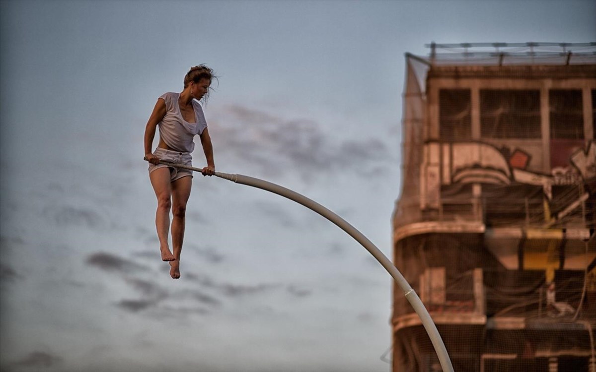 Τo Horizon, που εκτελεί η ίδια, είναι μια εντυπωσιακή ακροβατική περφόρμανς που κόβει την ανάσα. Ένας χώρος συμπυκνωμένος σε μια λεπτή ατσάλινη γραμμή που ζητά την αδιάσπαστη προσοχή μας. Η διαδικασία της αιώρησης δημιουργεί ένα σύμπαν αντιθέσεων − το πάνω και το κάτω, η δράση και η ανάπαυση, το ασήμαντο και το τραγικό. Οι μύες αποκαλύπτονται σε όλη την ευάλωτη φύση τους, την ίδια στιγμή που ξεδιπλώνεται η δύναμή τους. Μέσα από τα θραύσματα, επινοείται ένα νέο κέντρο που αντισταθμίζει τον κατακερματισμό της σύγχρονης καθημερινότητας.
