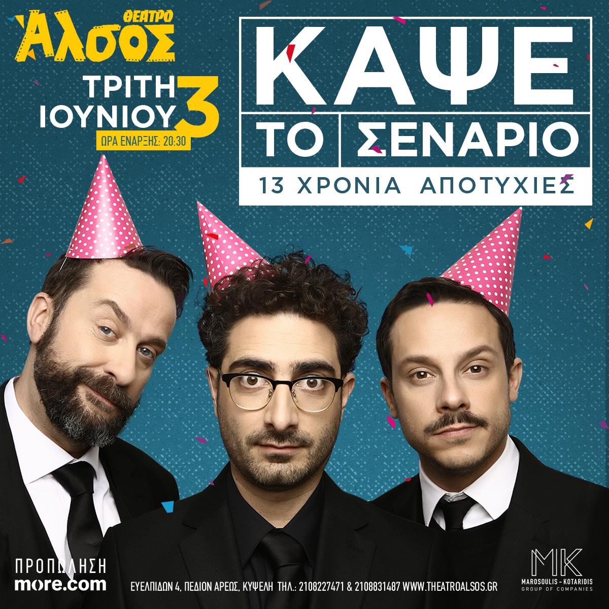 Ο Λάμπρος Φισφής, ο Δημήτρης Μακαλιάς και ο Ζήσης Ρούμπος εκτελούν κάθε "τρελή" εντολή σου, δημιουργώντας μια μοναδική, απρόβλεπτη παράσταση, που δεν θα ξαναδείς ποτέ ίδια. Με πάνω από 800 παραστάσεις, sold out περιοδείες και ένα κοινό που συμμετέχει με πάθος, είναι το μακροβιότερο comedy improv show στην Ελλάδα.
