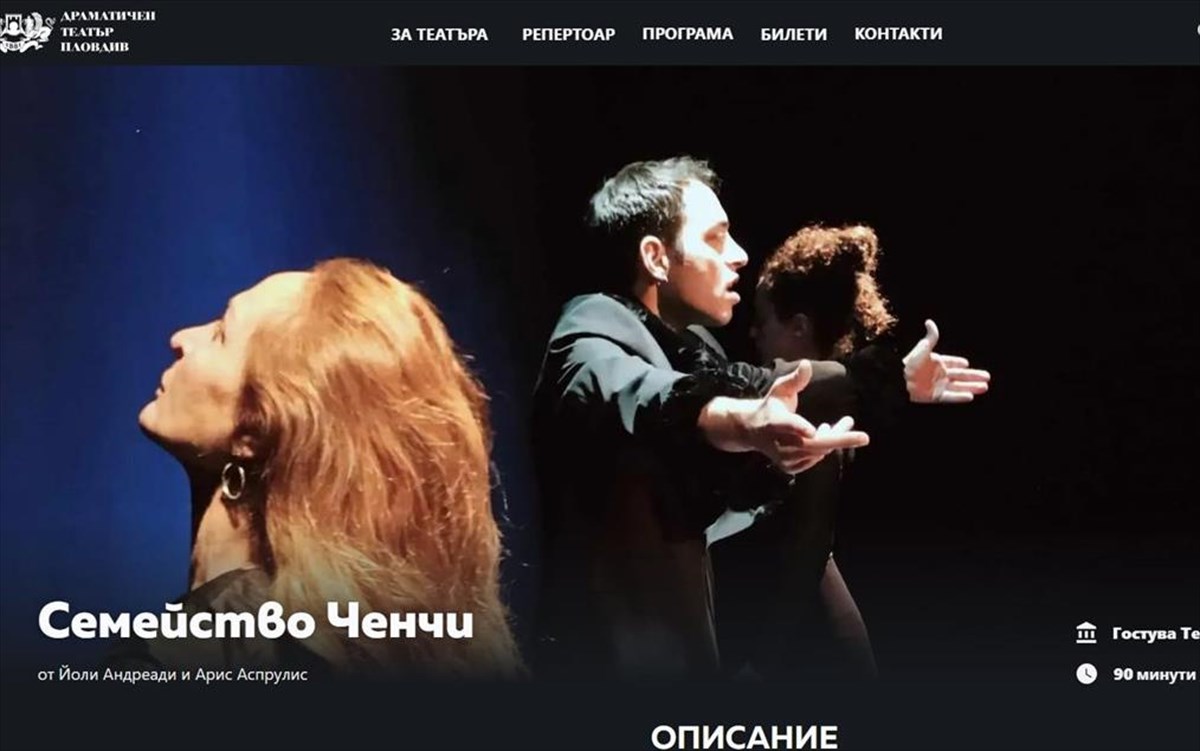 Η ελληνική παράσταση "Οικογένεια Τσέντσι" σε σκηνοθεσία Ιόλης Ανδρέαδη, με τους Κωνσταντίνα Τάκαλου, Θάνο Κόνιαρη και Έλενα Καλαϊτζή επί σκηνής, παρουσιάστηκε στο «Crossroads Stage Autumn Theater Festival», το επίσημο φεστιβάλ του Δραματικού Θεάτρου της Φιλιππούπολης (Plovdiv Drama Theater).
