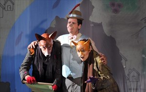 Γεμάτο μαθήματα ζωής, με τον μικρό ξύλινο ψεύτη του να παρασύρεται από τον κόσμο του θεάματος και τη σαγήνη του χρήματος και να γίνεται μια άβουλη μαριονέτα, μέχρι να φτάσει, τελικά, στη συνειδητοποίηση, το δημιούργημα του Κάρλο Κολόντι, παρουσιάζεται στην παιδική σκηνή του θεάτρου Ακροπόλ.