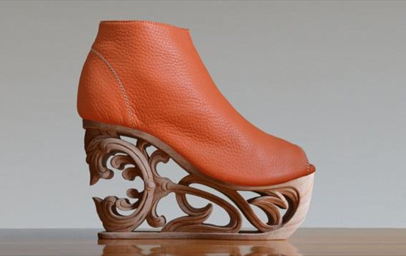 Θα δούμε και τα πιο πρωτότυπα παπούτσια, με αρχαιοελληνικές αναφορές. Φανταστείτε κάτι σαν σύγχρονους κοθόρνους, με δέρμα και ξύλινα γλυπτά που φέρουν ευφάνταστες ονομασίες όπως χρυσάνθεμα, αλλά και πλατφόρμες που καταλήγουν σε κύμα ή άλογο.