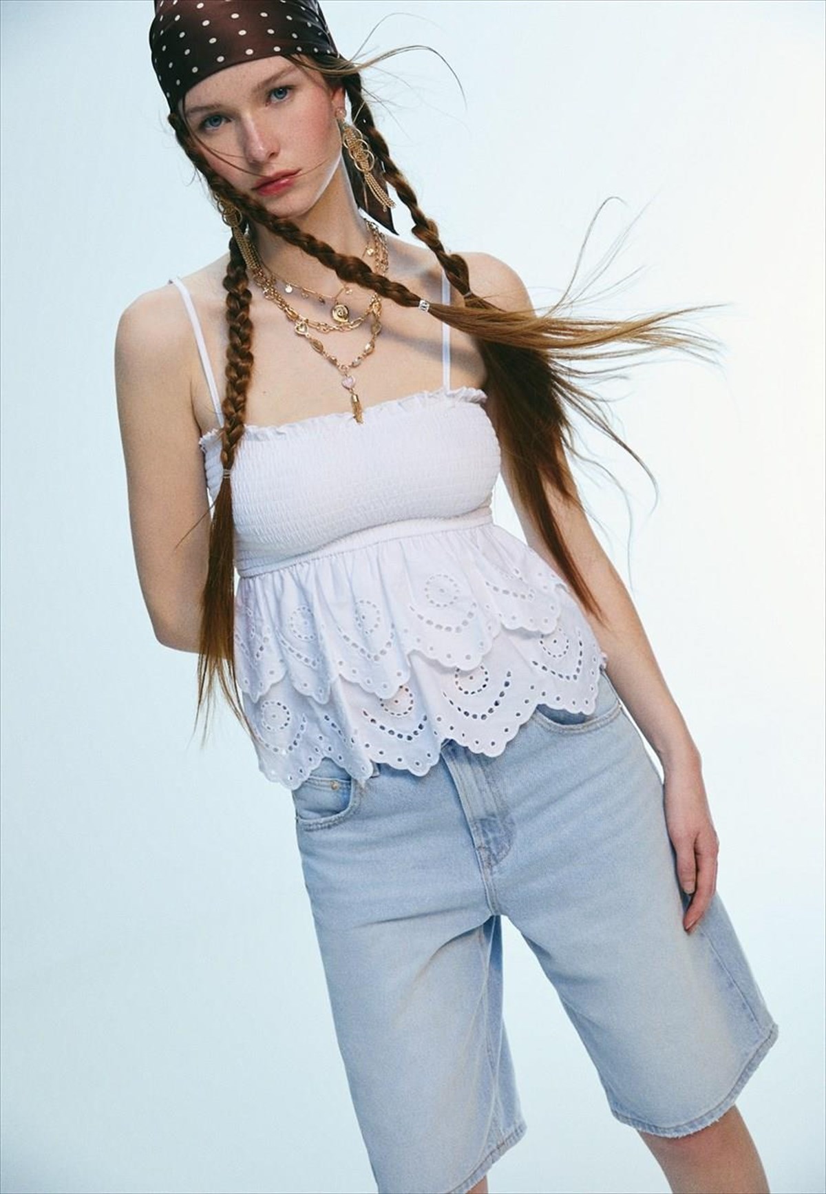 Μπλούζες από βελονάκι: Οι μπλούζες από βελονάκι είναι must-have για κάθε boho συλλογή. Είτε είναι σε κλασικό λευκό χρώμα, είτε σε έντονα χρώματα, η λεπτομέρεια του βελονιού προσδίδει έναν vintage και ρομαντικό αέρα, ιδανικό για χαλαρές καλοκαιρινές μέρες ή ακόμη και για ένα ρομαντικό βραδινό look.