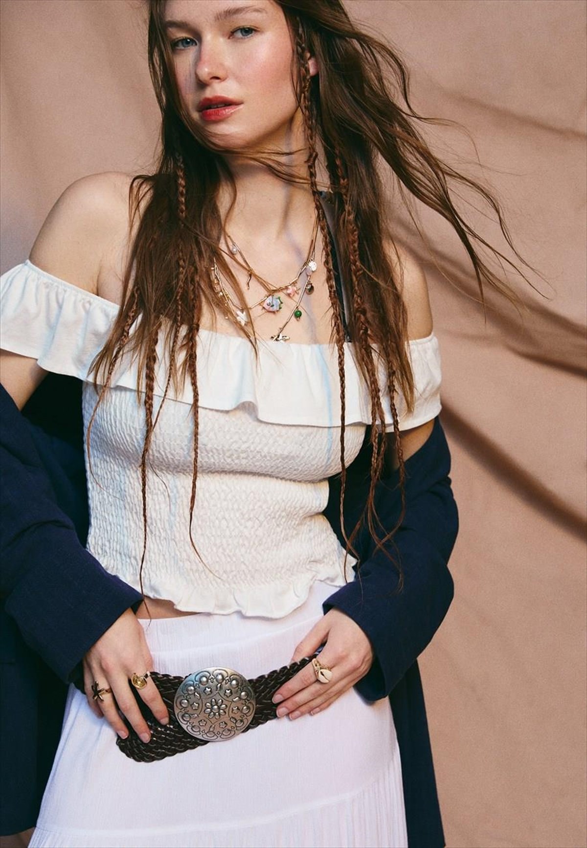 Φαρδιές ζώνες: Η ζώνη είναι το αξεσουάρ που ολοκληρώνει την boho εμφάνιση, προσφέροντας σχήμα και χαρακτήρα σε ένα αέρινο outfit. Η Stradivarius προτείνει φαρδιές ζώνες που ταιριάζουν με φορέματα και φούστες, δίνοντας έμφαση στη μέση και προσφέροντας στιλιστική συνοχή.