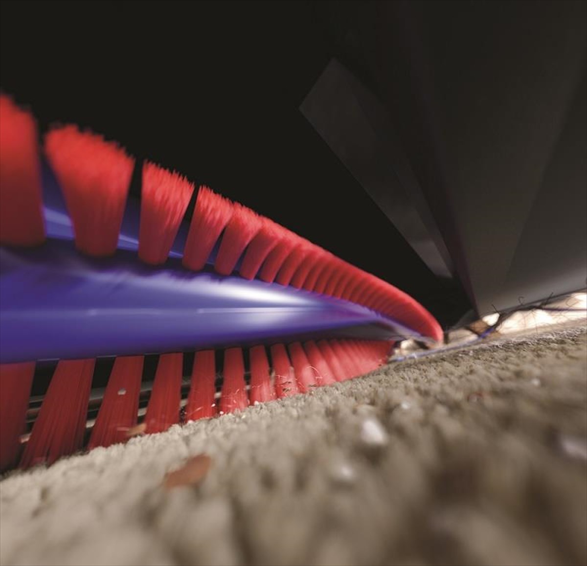 Η συσκευή διαθέτει υγρό κύλινδρο μικροϊνών που καθαρίζεται αυτόματα σε κάθε περιστροφή, σε συνδυασμό με σύστημα διαβροχής 12 σημείων, το οποίο παρέχει καθαρό, ζεστό νερό κατά τη διάρκεια του καθαρισμού. Ο μηχανισμός του κυλίνδρου εκτείνεται αυτόματα κατά 40 mm, επιτρέποντας στο Dyson Spot+Scrub™ Ai να καθαρίζει ακριβώς μέχρι το σοβατεπί.