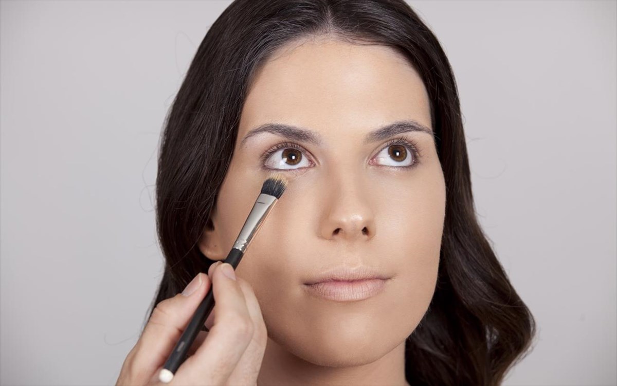 2. Concealer: ξεκουράζουμε την περιοχή των ματιών με 1 ή 2 τόνους πιο ανοιχτής απόχρωσης από του foundation.