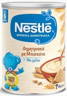 Με τα Βρεφικά Δημητριακά Μπισκότο της Nestlé, από τον 6ο μήνα δίνεις ακόμα περισσότερη ποικιλία στη διατροφή του μωρού σου χωρίς να κάνεις συμβιβασμούς στην ποιότητα προσφέροντας πάνω από 50% δημητριακά σε μια κουταλιά!