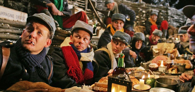 Με αφορμή τη μουσική που ακούγεται μέσα από κάποια χαρακώματα, οι τρεις αρχηγοί των στρατευμάτων αρχικά και αργότερα το σύνολο των στρατιωτών, παραμονή Χριστουγέννων, έρχονται σε επαφή και αποφασίζουν να κάνουν ανακωχή και γιορτάζουν μαζί. Την επόμενη ημέρα οι στρατιώτες αρνούνται να συνεχίσουν τον πόλεμο... Ισως η σημαντικότερη στιγμή της σύγχρονης ιστορίας.
