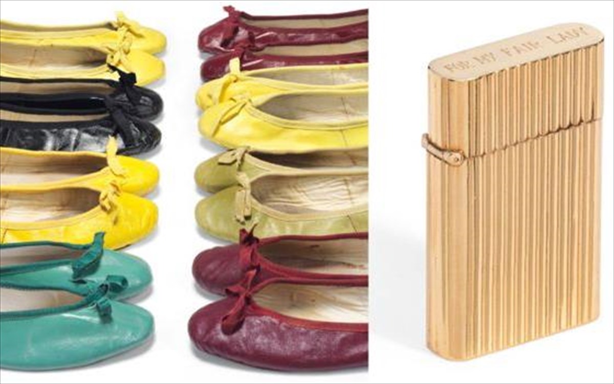 Christie’sΗ συλλογή περιλαμβάνει πολλά παπούτσια της Hepburn και ένα αναπτήρα με χαραγμένη αφιέρωση.