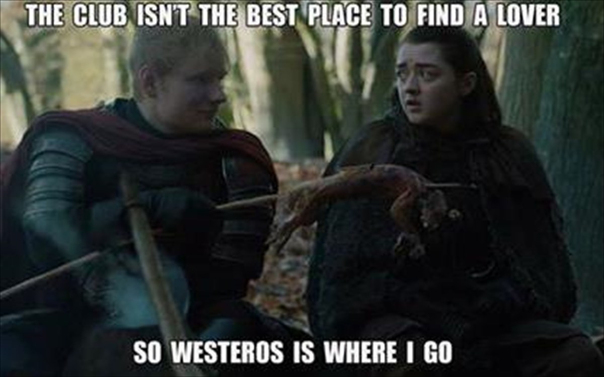 Ο Sheeran λοιπόν ανέλαβε το ρόλο ενός στρατιώτη των Lannister που καθόταν μαζί με μερικούς άλλους ακόμα για να ξαποστάσουν και φυσικά θα ήταν αυτός που θα τους τραγουδούσε, αναγνωρίζοντας την φωνή και την προφορά του πριν καν τον δούμε στην οθόνη μας. Οι δρόμοι του διασταυρώθηκαν με την Arya, η οποία μόλις επέστρεφε από το μαζικό φονικό του Walder Frey και των στρατιωτών του και είχαμε κάθε λόγο να πιστεύουμε ότι θα συνέχιζε στον ίδιο ρυθμό και ότι αυτή η σκηνή θα οδηγούταν σε μακελειό. Ωστόσο εξελίσσεται και καταλήγει εντελώς ήρεμα και είναι σίγουρα η πιο ανθρώπινη στιγμή όχι μόνο του επεισοδίου, αλλά και από όσες είχε ως τώρα η σειρά.