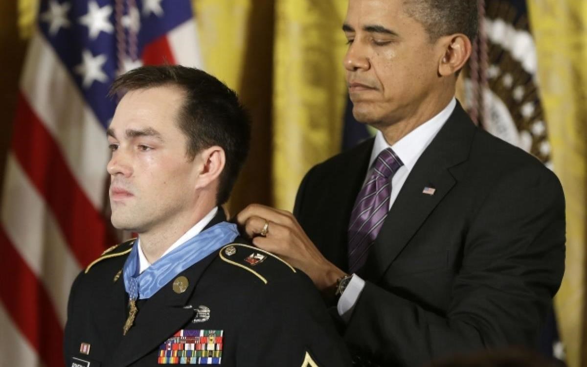 AP / Pablo Martinez MonsivaisΟ πρόεδρος Obama των ΗΠΑ παρασημοφόρησε τον λοχία Romesha το 2013.