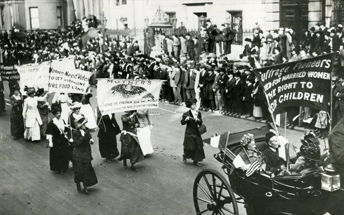 Γυναίκες παρελαύνουν στους δρόμους της Νέας Υόρκης απαιτώντας το δικαίωμα στην ψήφο.