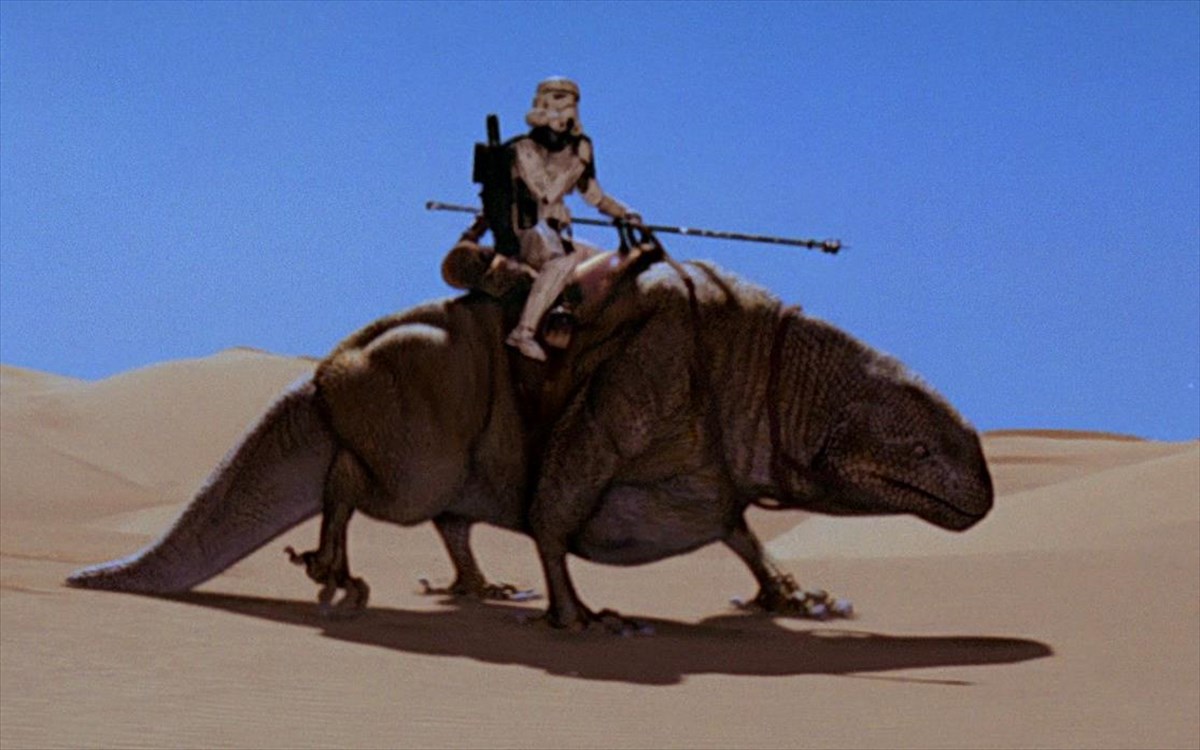 FUN FACT- When I climbed inside the Dewback outside the Cantina in Tunisia there was a crowbar to lift its' head & it was covered in newspaper paper-mache, including a review of a David Bowie concert in Paris, which I read by flashlight. Odd, but true. 🤪 pic.twitter.com/KJCpHJ0gcU
