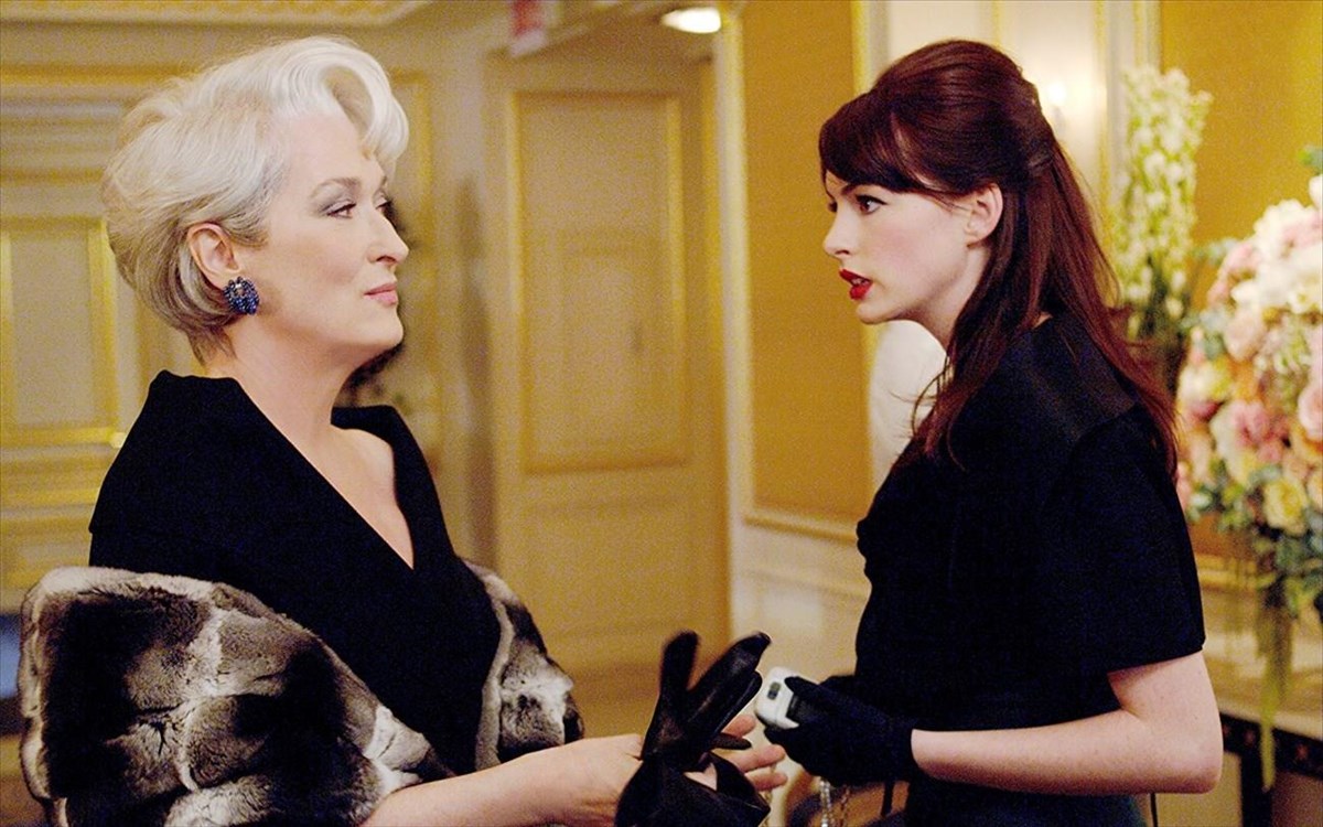 Ο Διάβολος Φοράει Prada: «Μπορείτε να συλλαβίσετε τη λέξη Gabbana;» ρωτάει η Andy (Anne Hathaway) στην ταινία Ο Διάβολος Φοράει Prada όταν μιλώντας στο τηλέφωνο προσπαθεί να γράψει το μήνυμα για τη διευθύντριά της από τον οίκο Dolce&Gabbana,- προφανώς. Η ατάκα αυτή είναι επαρκής για να δηλώσει το πόσο άσχετη με τη μόδα είναι η Andy όταν πηγαίνει να εργαστεί σε διάσημο περιοδικό μόδας. Στην ταινία η μόδα είναι στο πρώτο πλάνο, πραγματεύεται άλλωστε το εργασιακό περιβάλλον ενός περιοδικού μόδας. Και παρόλο που η Andy αρχικώς διαπράττει πολλαπλά στιλιστικά ατοπήματα, στη διάρκεια της ταινίας καταφέρνει να διαμορφώσει μοδάτο και σικ ενδυματολογικό χαρακτήρα με τα office look κομμάτια, το ασπρόμαυρο deal και τις σικ τουαλέτες.