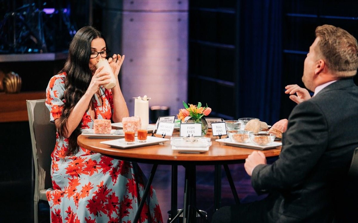 CBSΟ James Corden έβαλε «δύσκολα» στην καλεσμένη του, η οποία τελικά αναγκάστηκε να δοκιμάσει ορισμένα από τα φαγητά μπροστά της.
