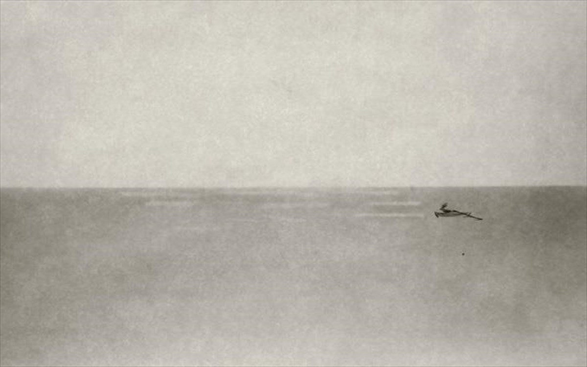 Το τελευταίο φύλλο της λεύκας πέφτει, ενώ ένας άνθρωπος είναι μόνος στη θάλασσα. Εμπνευσμένο από το ομώνυμο ποίημα του Γιώργου Σεφέρη.