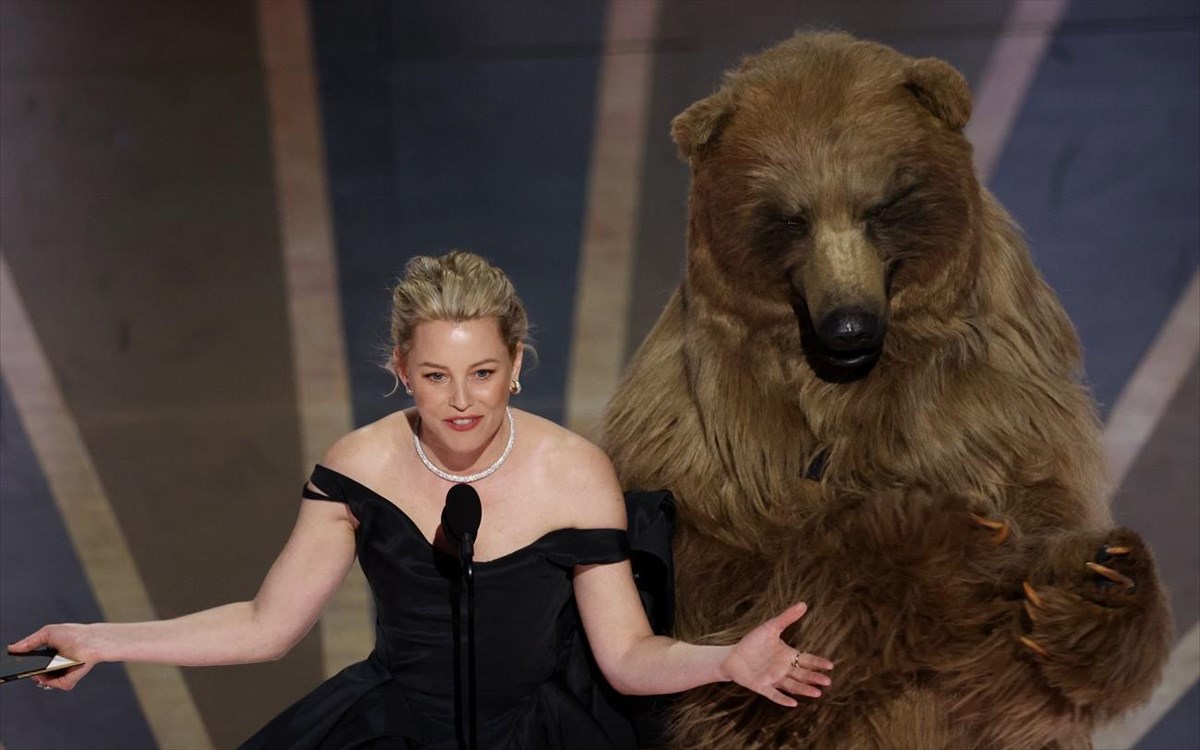 Η Ελίζαμπεθ Μπανκς παρουσίασε το βραβείο για τα Καλύτερα Οπτικά Εφέ συνοδευόμενη από μία υπερκινητική αρκούδα γκρίζλι. «Πρόσφατα σκηνοθέτησα την ταινία Cocaine Bear και χωρίς οπτικά εφέ, έτσι θα έμοιαζε η αρκούδα», αστειεύτηκε η ίδια.