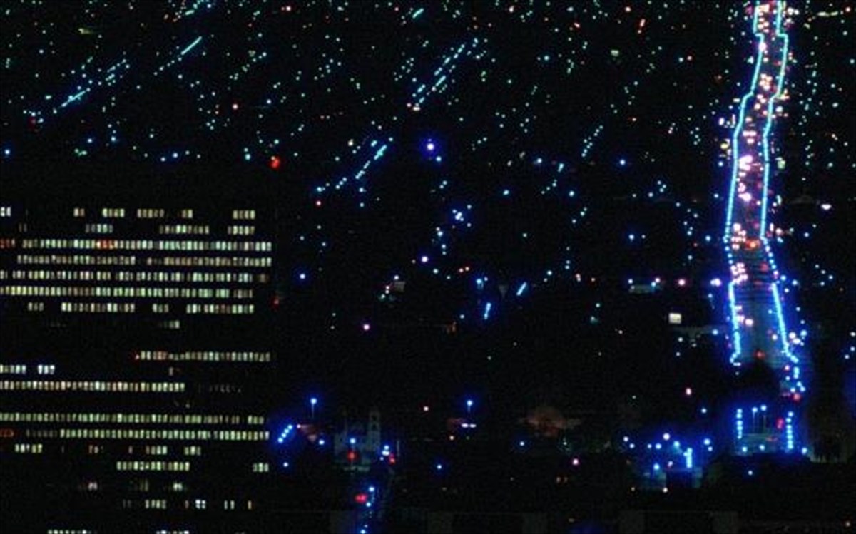 Στο 65ο λεπτό της ταινίας αυτή σχεδόν διακόπτεται απότομα από φρενήρη γραφικά που πέφτουν με ιλιγγιώδη ταχύτητα και ακούγεται εκκωφαντική μουσική, και μετά ακολουθεί η απόλυτη σιωπή. Ξαφνικά εμφανίζεται ένα ελικόπτερο που κατοπτεύει από ψηλά. Παρατηρεί ουρανοξύστες, παίρνει νυχτερινές δορυφορικές λήψεις μιας πόλης και μετά βλέπει εξαρτήματα υπολογιστών. Στην πραγματικότητα, αυτές οι εικόνες δημιουργήθηκαν στα μέσα της δεκαετίας του 1970 σε υπολογιστή, πιθανώς σε κάποιον IBM ή σε έναν DEC PDP!
