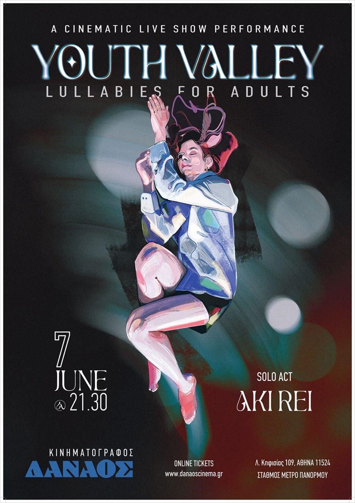 Οι Youth Valley έρχονται στον ιστορικό κινηματογράφο του Δαναού για μια μοναδική βραδιά που συνδυάζει μουσική και οπτικό αφήγημα, βασισμένο στον πρώτο τους ολοκληρωμένο δίσκο "Lullabies For Adults" (2023), που θεωρήθηκε από τα περισσότερα εγχώρια blogs ως ένας από τους καλύτερους δίσκους της χρονιάς 2023.